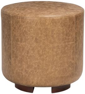 Anchor your living space with this richly textured leather ottoman. Wrapped in supple top grain leather, its warm, lived-in finish adds depth and character from every angle. The rounded silhouette feels substantial yet inviting, perfect as a casual seat, footrest, or accent table.Read More