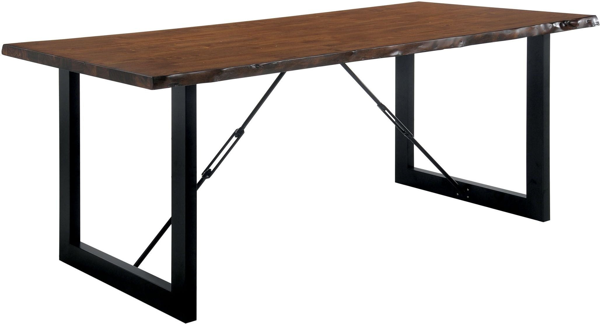 With bold U-shaped supports and mimicking chain-links, the dining table completes with spacious room for six and a balanced walnut finish.