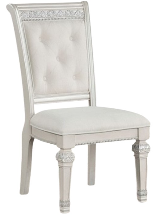 The Stella Mia Dining Side Chair is a traditional piece that combines elegance with comfort. Crafted from solid rubberwood, solid wood, oak with ash burl veneer, and engineered wood, it boasts an ivory finish that complements its ornate design.Read More
