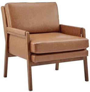Timeless aesthetics for modern sensibility is the gorgeous Colton accent chair! A generously sized seating area and angular armrests are handsomely embellished with faux leather upholstery in a rustic tone. Solid wood legs complete and enhances the classy appeal. Available in vintage cider pu and vintage gray fabric options.Read More
