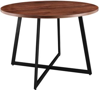 Modern Minimalist - round shape 42" tabletop in sleek Brown melamine finish is complemented on angular metallic gunmetal powder-coated steel legs.