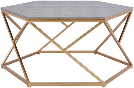 Geometric lines and faux shagreen create a sophisticated end table that’s highlighted by its gold-painted steel frame and six-sided polygon gray tabletop.