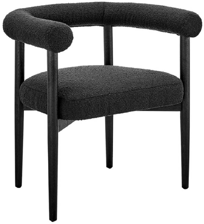 Indulge in the Interior Décor! Whether it's a corner space or a dining room, this chair highlights form + function. Its trending bolster back seat is accentuated with boucle black cover and solid rubber wood legs creating a refreshed mid-century lifestyle piece.Read More