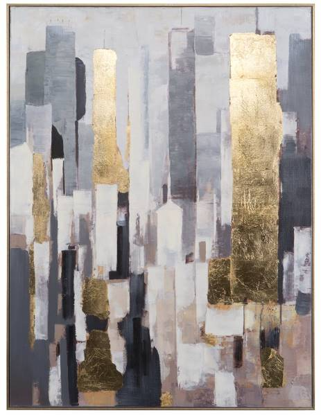 This intriguingly abstract painting is just what your wall needs to spice up the aesthetic of your living space. Layered rectangular shapes suggest a cityscape. Icy colors of grey and blue piece together with golden beige to create a gorgeous mix.Read More