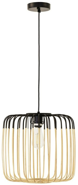 A slender and elegant modern pendant light with a twist! This brilliant one-bulb dangling pendant light has a 47-inch length and showcases a 14-inch diameter cage that is the perfect blend of beige bamboo and black metal that creates a stunning juxtaposition of natural and man-made.Read More