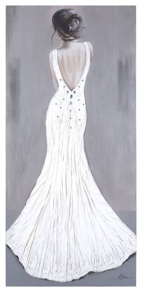 This classy and sophisticated image of an elegant woman in white will have your guests gazing in awe. Yosemite Home Decor presents a hand-painted work of art that will compliment your living space beautifully. The woman pictured effortlessly wears a gorgeous mermaid-style wedding gown.Read More